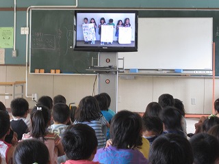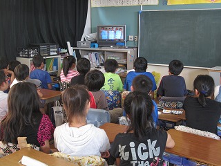 、体育館が耐震工事で使えないため、各教室でビデオを見ました。