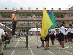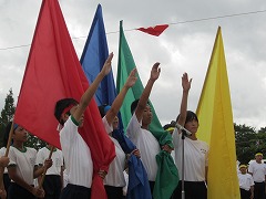 | 黄・赤・青・緑、色鮮やかな旗を持った旗手を先頭に、各団が入場しました。 | |||