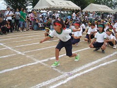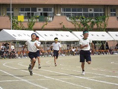 | 小学校生活最後の徒競走。みんな一生懸命走りました。 | |||
