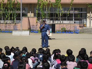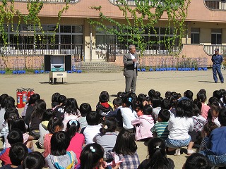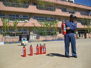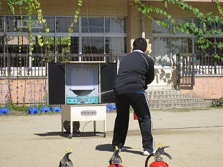 2学期は、地震が起きて、火災が発生したという想定で訓練を行いました。 今回は音楽室や理科室という特別教室からの避難もあり、普段とは違う経路で移動する児童もいました。 避難は今回も落ち着いて、素早く行うことができました。 避難後は消防署員の方にご協力頂き、水消化器による消火訓練を行いました。 先生が消火する様子を子どもたちはよく見ていました。 訓練が訓練で済めばよいのですが、天災はいつ起こるかわかりません。 一人ひとりが命を守れるように、意識をもって行動してほしいと思います。