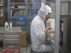 検査してビンに入れているところ