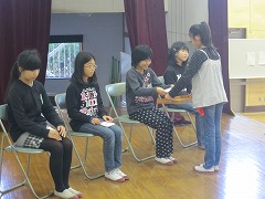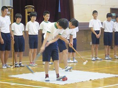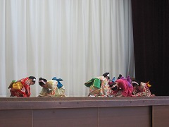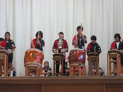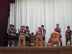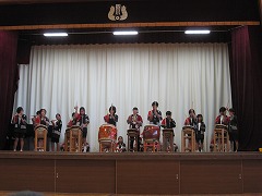 | 練習したおはやしを2つのチームに分かれて迫力ある演奏をしてくれました。 | ||