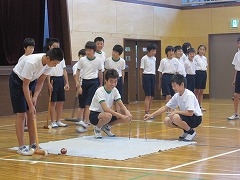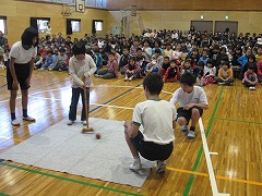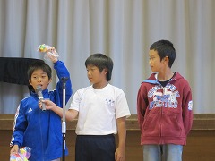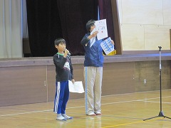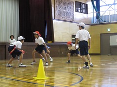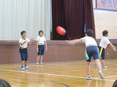 | タグラグビーの紹介と試合の様子を見せてくれました。3年生も参加しました。 | ||