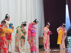 | 着物の帯の結びを2種類、実演してくれました。 | ||