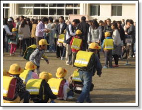 保護者の方も交え、お迎えの手順や通学路の確認など