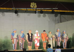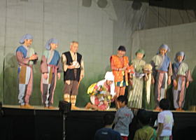 *尺八、琵琶、篠笛などの美しい音色で民話の世界をつくります。また、コロスたちによる 日本伝統楽器の生演奏も興味深い。最後に舞台あいさつをする