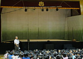 舞台をつとめました。演目は『べっかんこオニ』です。まずは校長先生のお話から。