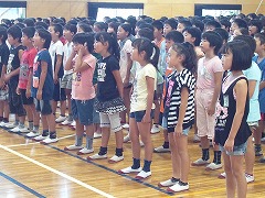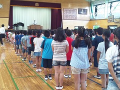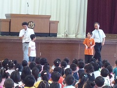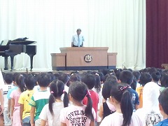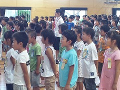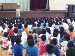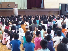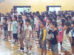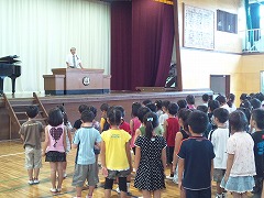 校長先生のお話 今日からいよいよ2学期です。 オリンピックの選手や高校野球の球児たちのように 気持ちを強く持ち、大きな花を咲かせてください。 養護の高木先生から 夏休み中 「早寝・早起き・朝ごはん」を守ってくれたかな? まだまだ暑いです。熱中症には気をつけてください。