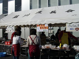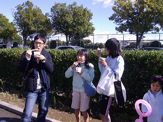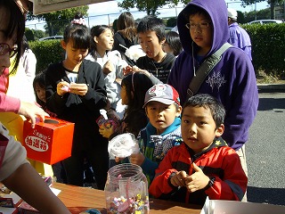 行政センターの駐車場では、模擬店がたくさん出店され、お客さんでにぎわってました。韮西小PTAでも「豚汁・落書きせんべい・くじ」の模擬店を出し、大盛況でした。ドッジボールを終わった子どもたちがいろいろなお店を覗き、買い物を楽しんでいました。両手に食べ物を持って、楽しそうにしていました。子どもたちにとっては、ドッジボールよりも模擬店の方が楽しみだったかもしれません。模擬店の前は、陽が当たり、風もなくのんびりとできる空間でもありました。