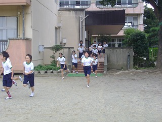 避難では、放送があり、先生の指示に従って避難して下さいから3分3秒で全員が校庭の南側に集合することができました。今までで一番早かったです。
